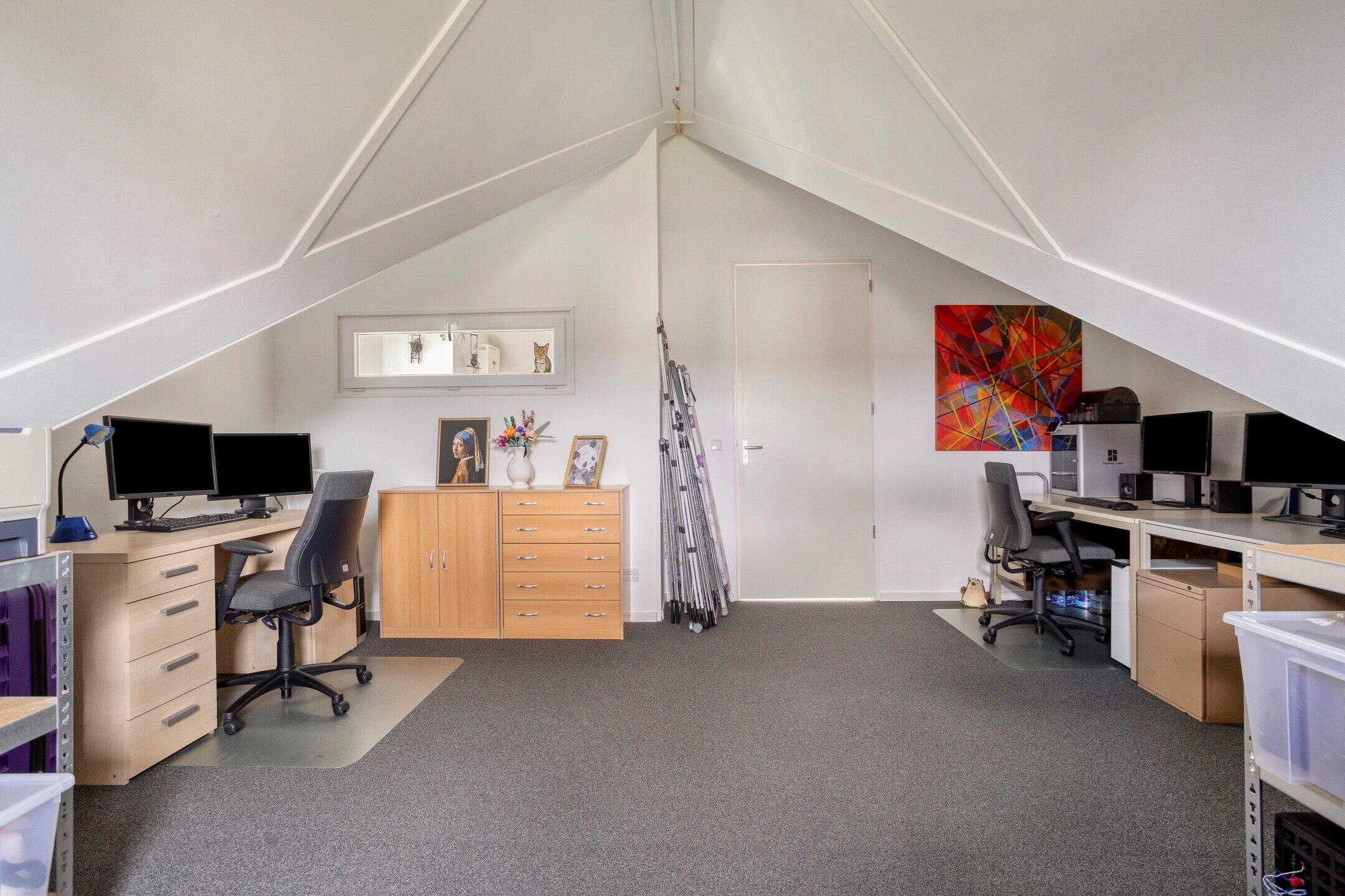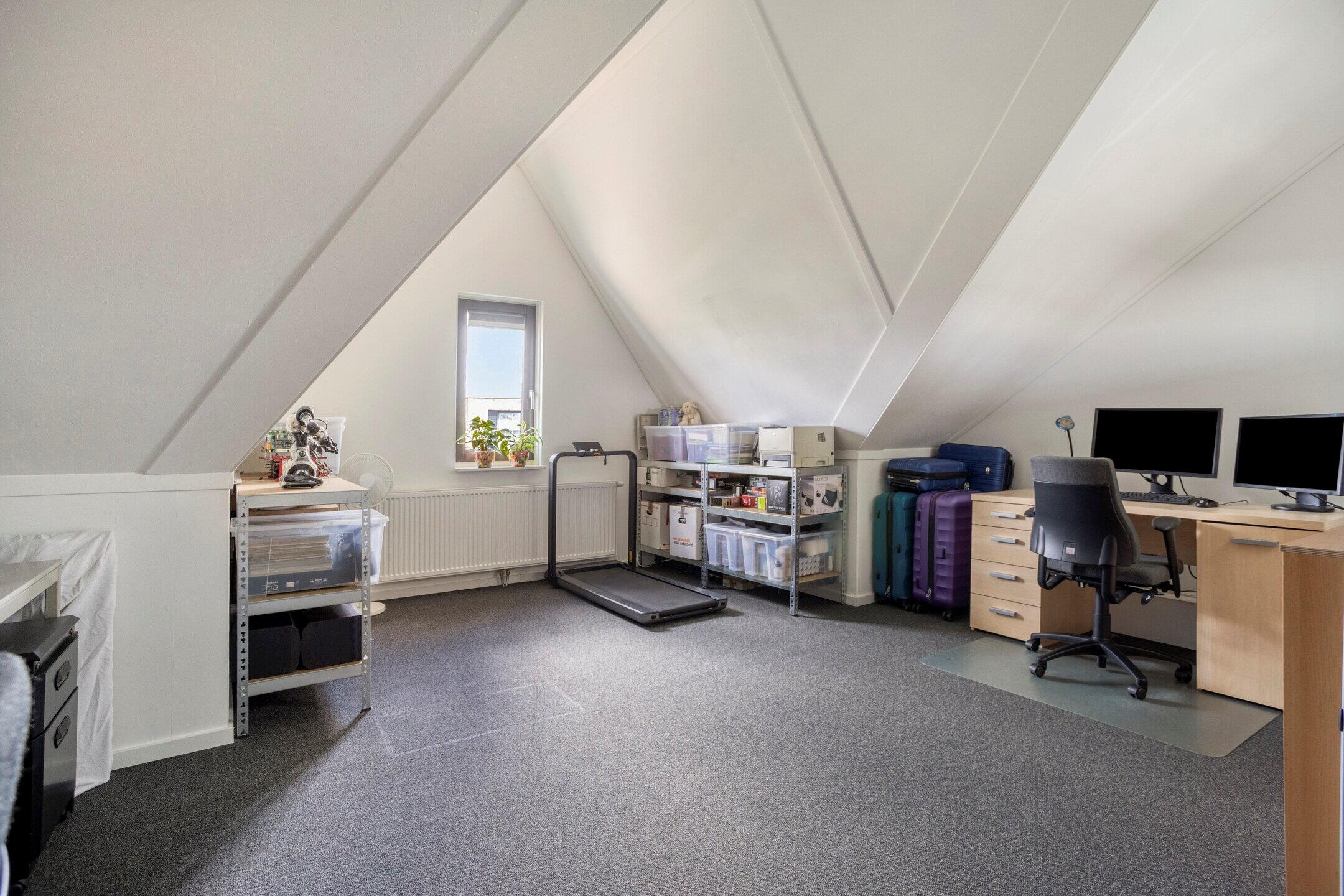 Via een vaste trap bereikt u de tweede verdieping. Hier is een vierde slaapkamer gerealiseerd en daarnaast is er voldoende ruimte voor bijvoorbeeld een werkplek, hobbyruimte of extra bergruimte. Ook bevindt zich op de overloop een dakkappel welke voor extra ruimte en licht zorgt de tweede airconditioning, de omvormer voor de zonnepanelen, de wtw unit en de aansluitingen voor wasmachine.
