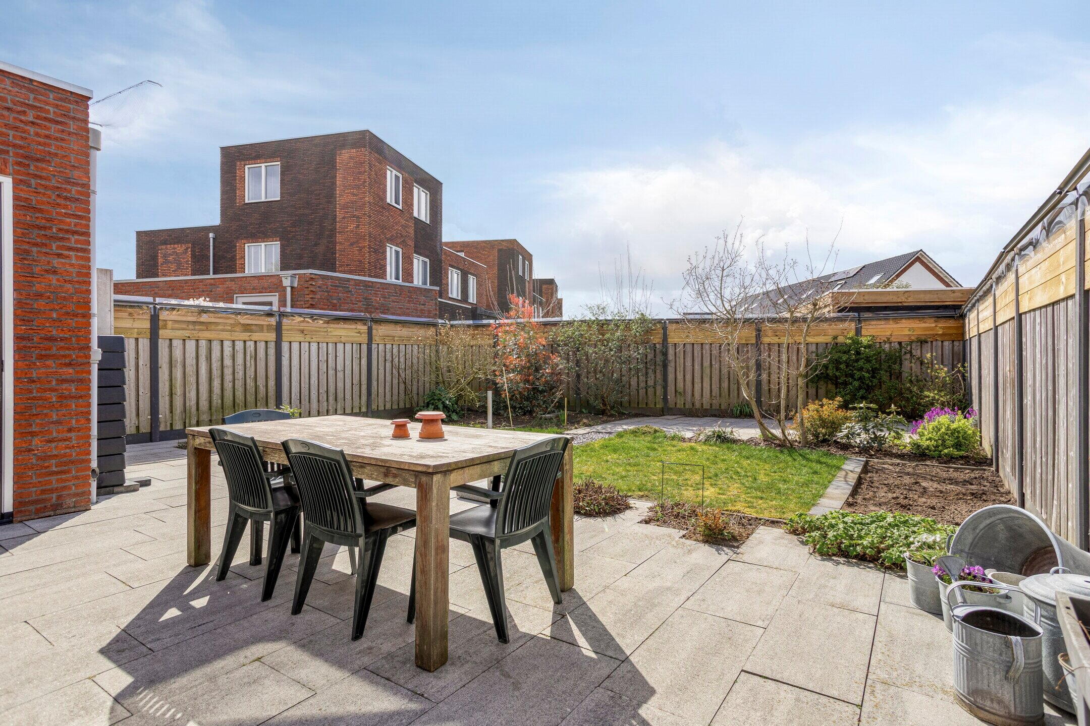 Vanuit de woonkamer is er middels openslaande deuren toegang tot de tuin op het zuidwesten en tevens tot de verlengde garage. Deze garage is voorzien van een laadpaal aan de voorzijde, is volledig geïsoleerd en biedt naast parkeergelegenheid ook uitstekende mogelijkheden voor opslag, hobbyruimte of werk aan huis. De tuin grenst aan de achtertuinen van omliggende woningen wat ruimte geeft, is verzorgd aangelegd en biedt volop mogelijkheden voor liefhebbers van groen en tuinieren. De bovenste kleilaag is vervangen door hoogwaardige tuinaarde, wat deze tuin uitermate geschikt maakt voor het creëren van een rijke en bloeiende buitenruimte. Hier kunt u later in het seizoen uw eigen frambozen plukken en uiteraard naar eigen wens een groene oase realiseren.